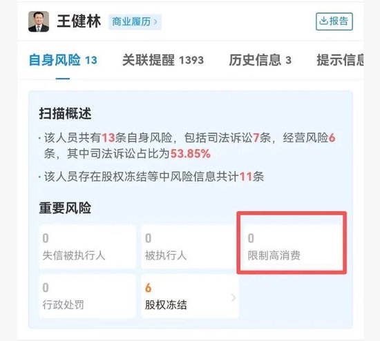 天眼查显示,因一笔1.86亿元的执行标的,万达集团和王健林等于近日被限制消费。这也意味着,近期王健林将不得乘坐飞机头等舱、入住星级酒店等。